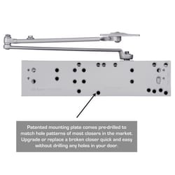 - Parallel arm: A parallel arm door closer has two arms that sit above the door and work together as they move.