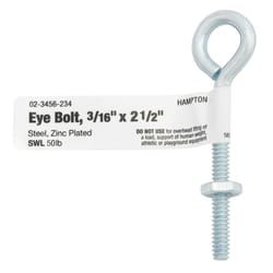 • Dimensions: Compare the thread size and shank length to the specifications of your project. Also, consider the diameter of the inside of the eye and the thickness of the eye section to ensure that the hardware you select is strong enough and able to accommodate what you intend to slip through the eye.