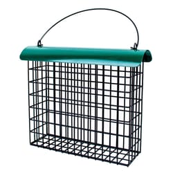 A suet bird feeder typically appears as a small metal cage where the suet cake sits. They can be hung or mounted. Suet-feeding birds can perch on the metal wires while they feed, while the durable construction helps deter non-avian feeders from sneaking a taste. Suet feeders are a good choice if you have jays, starlings, chickadees, woodpeckers and nuthatches in your area.