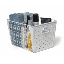 Find baskets ideal for bathroom and kitchen use, with durable steel wire baskets in a range of sizes to fit your space accordingly. Organize soaps, shampoos, conditioners, sponges and more in one easy-to-access area in your shower for everyday use items or under your sink for spares. Plastic storage containers with swing-out handles also make convenient bathroom storage options, but their versatility makes them just as useful in the kitchen or laundry room, allowing you to store dish soap, sponges, detergent, and towels neatly and easily.