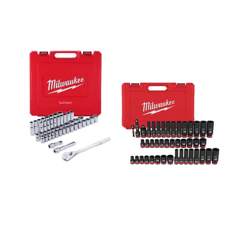 Milwaukee 90PC 1/2 in and 3/8 in Metric & SAE Sockets and Impact Sockets Set